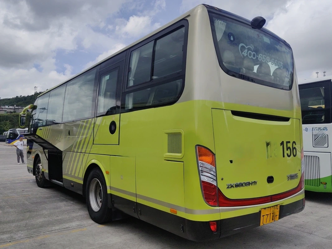 Despite being a used vehicle, the ZK6908 retains luxury touches that keep passengers comfortable, making it a step up from basic used coaches. The 38 seats are upholstered in durable, stain-resistant leatherette (easy to clean after tour groups or daily commutes) and offer 750mm of legroom—enough for adult passengers to stretch during 2+ hour trips. Each seat includes a fold-down armrest, a personal reading light, and a USB charging port (recently inspected and functional, ensuring passengers stay connected). The cabin features a climate control system with 8 adjustable air vents (serviced to maintain consistent cooling/heating) and a basic entertainment system (AM/FM radio + auxiliary input) for playing music or tour commentary. For luggage, it has a 9m³ under-floor cargo compartment (large enough for 38 carry-on bags plus 10 checked suitcases) and overhead racks with reinforced hinges—all inspected for structural integrity. The bus also includes safety features like anti-lock brakes (ABS), electronic brakeforce distribution (EBD), and a driver airbag—critical components that have been tested and certified to meet local safety standards.