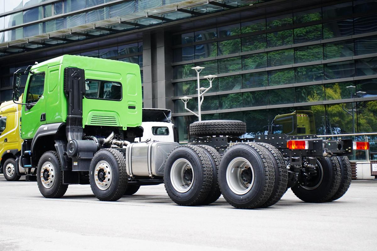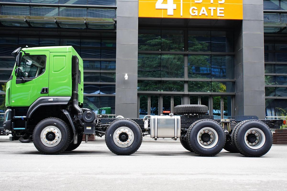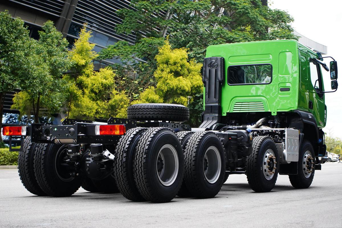 What makes this model stand out for multi-site work is its 6m×2.35m×1.5m dump body—sized to maximize payload without sacrificing maneuverability. Constructed from Q690 high-strength wear-resistant steel, the body resists scratches from sharp road base materials and features a reinforced tailgate seal to prevent leaks when hauling wet concrete (a common issue with lighter-duty trucks). With a Gross Vehicle Weight (GVW) of 31 tons and a rated payload of 16.8 tons, it can carry enough material to supply one roadwork crew for half a day, eliminating the need for frequent back-and-forth to material yards. The 6m length also lets it fit into tight new town construction yards (unlike longer 6.5m+ trucks that block residential access roads) and navigate through suburban neighborhood streets to reach hidden project sites. Underneath, a reinforced double-layer frame (270×80×(11+9)mm) and 10/10/12-leaf spring suspension absorb bumps from unfinished suburban roads, protecting both the cargo and the truck’s chassis during daily multi-site runs.