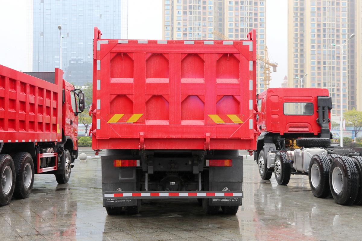 What makes this model ideal for heavy-duty work is its 8.6m×2.45m×1.6m dump body—engineered for maximum capacity and durability. Constructed from Q960 ultra-high-strength steel (30% thicker than standard heavy-duty grades), the body resists deep scratches from sharp rock and corrosion from mine chemicals, while its reinforced hydraulic lifting system raises a full 24-ton load in just 25 seconds—critical for keeping mining or dam construction schedules on track. With a Gross Vehicle Weight (GVW) of 31 tons and a rated payload of 22.5 tons, it cuts down on round trips (often by 30% compared to smaller 7m trucks) when moving bulk materials. Underneath, a double-layer frame (300×85×(14+12)mm) and heavy-duty 13/13/16-leaf spring suspension with shock absorbers absorb impacts from uneven mine terrain, protecting both the cargo and the truck’s chassis during years of high-stress use.