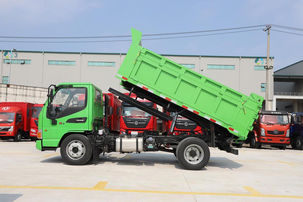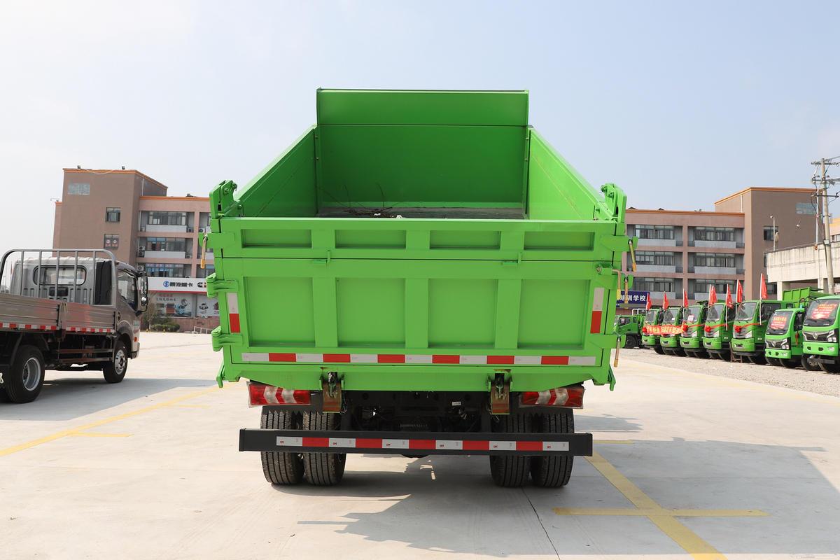What makes this model perfect for solo use is its 3.6m×1.8m×1.1m dump body and single-cab design, which cuts unnecessary weight and size. The body, made from Q235 carbon steel (durable enough for light loads like tools or garden supplies, yet lightweight to boost fuel efficiency), has a low 0.95-meter loading height—key for solo operators who load materials by hand (no need for help with heavy lifting). The hydraulic lifting system is compact but reliable: a single small pump raises the body in 19 seconds (fast enough for quick drop-offs between jobs) and requires minimal maintenance—no complex parts to service alone. Underneath, a lightweight reinforced frame (170×60×5mm) and 5/7-leaf spring suspension absorb bumps from potholed city streets, protecting fragile cargo like potted plants or power tools. It also features small, maneuverable 195R15 tires—cheap to replace and easy to handle, even for less experienced solo drivers.