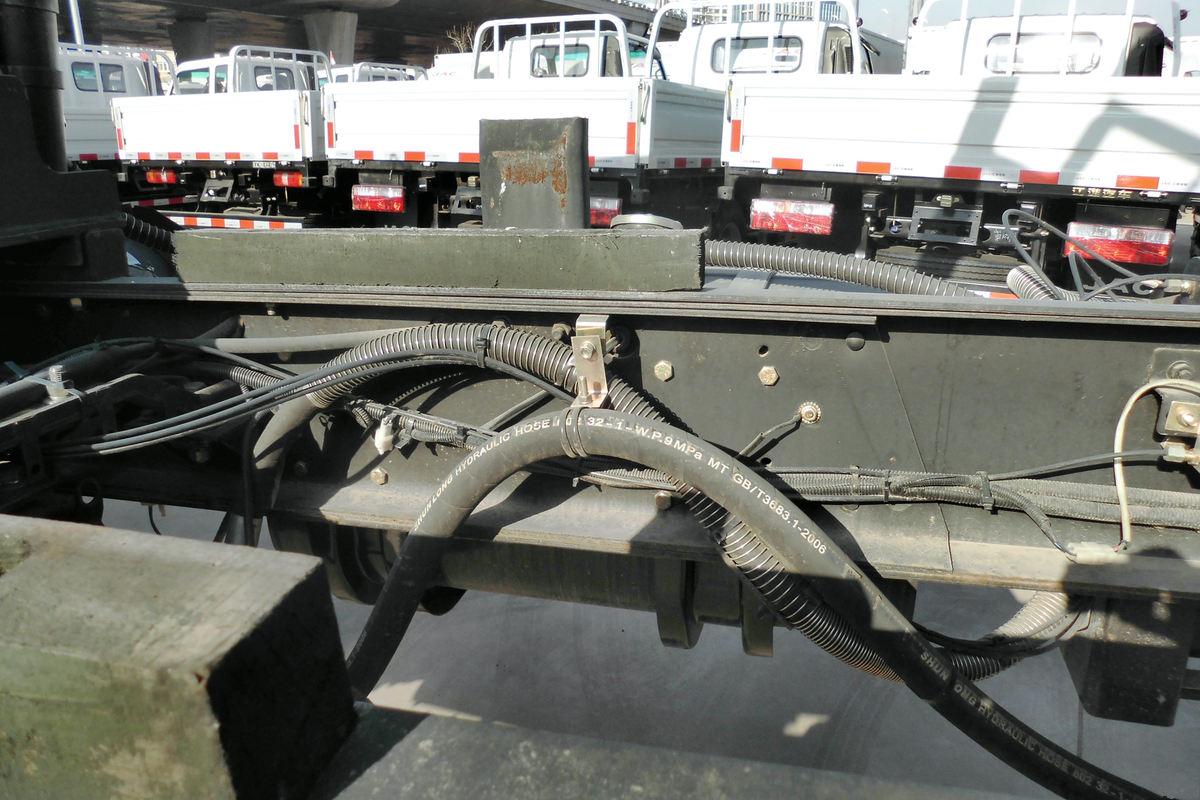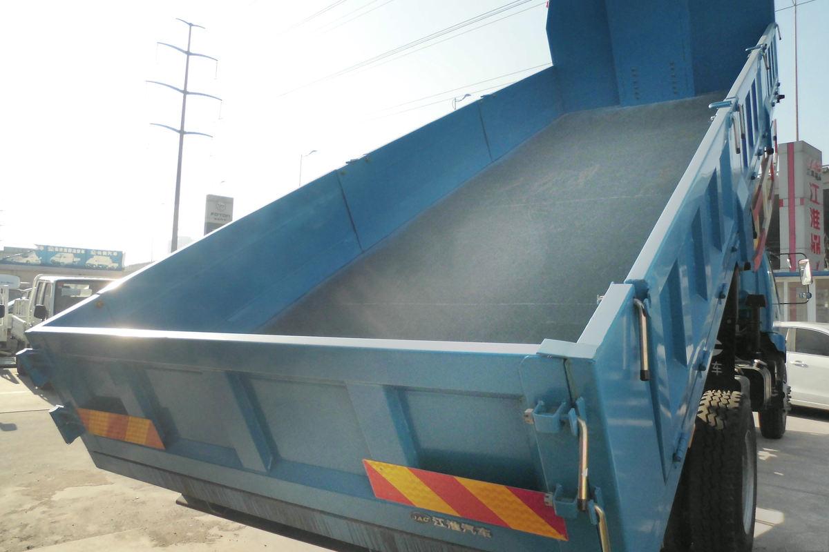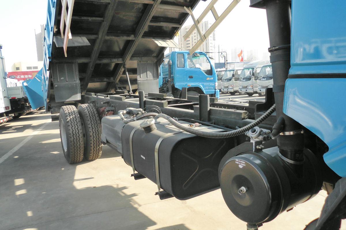 What makes this model ideal for last-mile tasks is its 6.5m×2.2m×1.2m dump body and user-friendly design. Constructed from Q345B high-strength steel (lightweight to boost fuel efficiency, yet tough enough for debris and landscaping materials), the body’s low 1.0-meter loading height is a game-changer: workers can load materials with wheelbarrows instead of heavy equipment, cutting setup time for small jobs. The hydraulic lifting system uses a single-pump design (reliable and cheap to repair) to raise the body in 20 seconds—fast enough to keep up with back-to-back residential stops—and includes a safety lock to prevent accidental lowering when parked on sloped driveways. Underneath, a reinforced single-layer frame (200×70×6mm) and 6/8-leaf spring suspension absorb bumps from potholed city streets, protecting both the cargo and the truck’s chassis during daily use. It also features compact mud flaps and a low-profile exhaust—preventing damage to garage doors or low-hanging tree branches in residential areas.