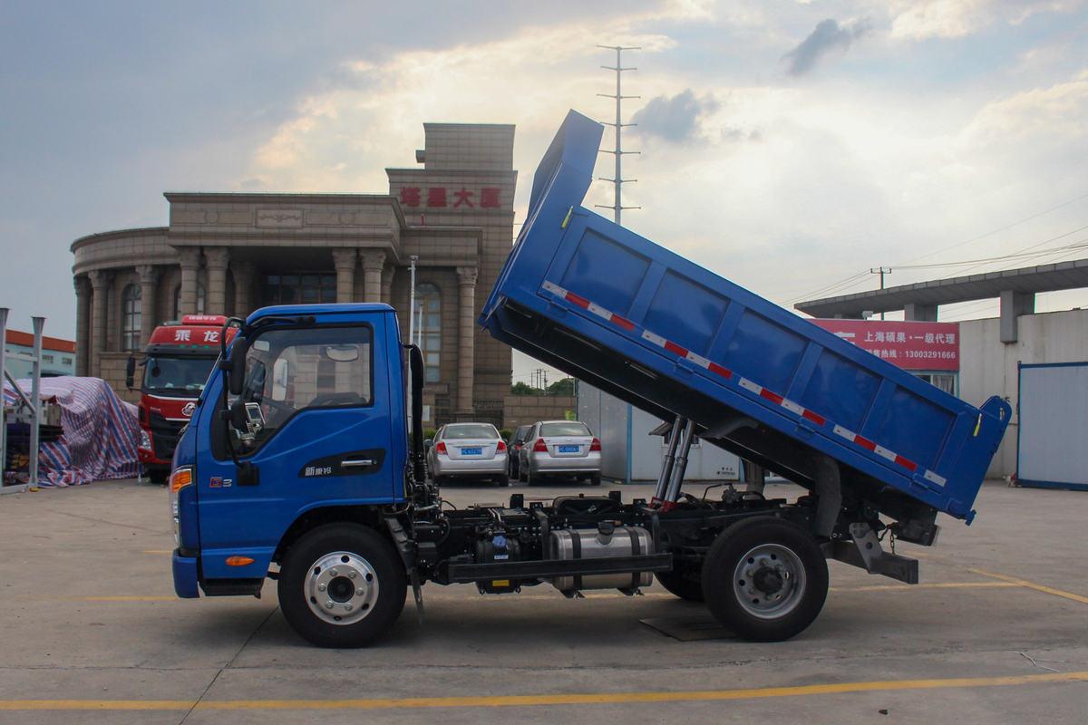 What makes this model stand out for light-heavy solo work is its 3.2m×1.8m×1.1m dump body and reinforced design. Constructed from Q345B high-strength steel (tougher than the Q235 used in the 95HP variant), the body resists dents from heavy materials like stone or metal, while its 3.2m length keeps it compact enough for urban spaces—shorter than the 3.3m model, making it easier to park in crowded downtown lots. Its 0.95-meter loading height remains accessible for solo loading, but the body’s wider 1.8m design increases payload capacity by 20% compared to the 95HP variant—letting you haul more per trip without extra size. The hydraulic lifting system uses a medium-duty single pump that raises a full 2.5-ton load in 20 seconds (faster than the 95HP model) and includes a safety lock to prevent accidental lowering when parked on sloped streets. Underneath, a reinforced frame (170×60×5mm) and 5/7-leaf spring suspension absorb shocks from cobblestones or potholes, protecting fragile cargo like power tools or paint cans while handling heavier loads. It also uses 195R15 tires—wider than the 95HP model’s 185R14s, providing better traction when hauling near-max capacity on wet urban roads.