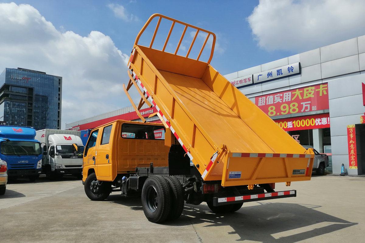 What makes this model stand out for entry-level use is its 3.19m×1.75m×1.05m dump body and beginner-friendly design. Constructed from durable yet lightweight Q235 carbon steel, the body handles light loads (like tools, soil, or small supply batches) without adding unnecessary weight—keeping fuel use low and making solo loading easier. At just 3.19 meters long, it’s slightly shorter than the Kangling G3’s 3.2m body, which means it’s even easier to park in tight urban spots (like behind small shops or on residential side streets). The 0.92-meter loading height is the lowest in its class—new operators can lift small bags or tools into the body without straining, no need for ramps. The hydraulic lifting system is basic but reliable: a single low-pressure pump that raises a full 2-ton load in 23 seconds (slow enough to avoid accidental missteps for beginners) and includes a clear visual indicator for "fully raised"—preventing overloading mistakes. Underneath, a lightweight but stable frame (165×58×5mm) and 4/6-leaf spring suspension absorb small bumps from potholes, while the 185R14 tires (narrower than the Kangling G3’s 195R15s) make steering lighter—reducing driver fatigue during long days of short trips.