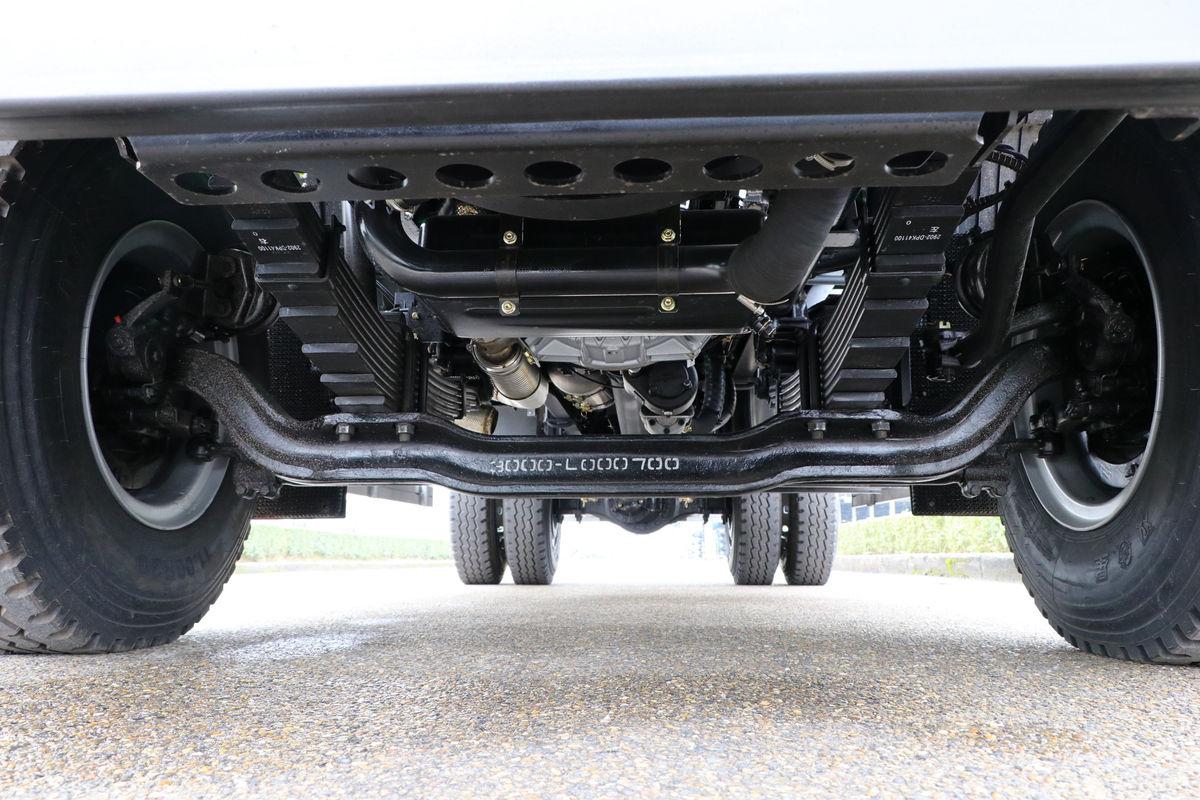 What makes this truck practical for daily small-scale tasks is its 5.8m×2.25m×1.4m dump body—sized to handle 10.2 tons of rated payload (with a 25-ton Gross Vehicle Weight) while staying compact. The body is made from Q550 high-strength steel, which resists dents from loose debris (like broken concrete or farm gravel) without adding unnecessary weight. Its hydraulic lifting system takes just 22 seconds to raise fully, a big time-saver for frequent load-and-dump cycles at small construction sites. Underneath, a lightweight single-layer frame (240×75×9mm) and 8/10-leaf spring suspension keep the ride stable over potholed rural roads, protecting both the cargo and the truck’s chassis during daily use.