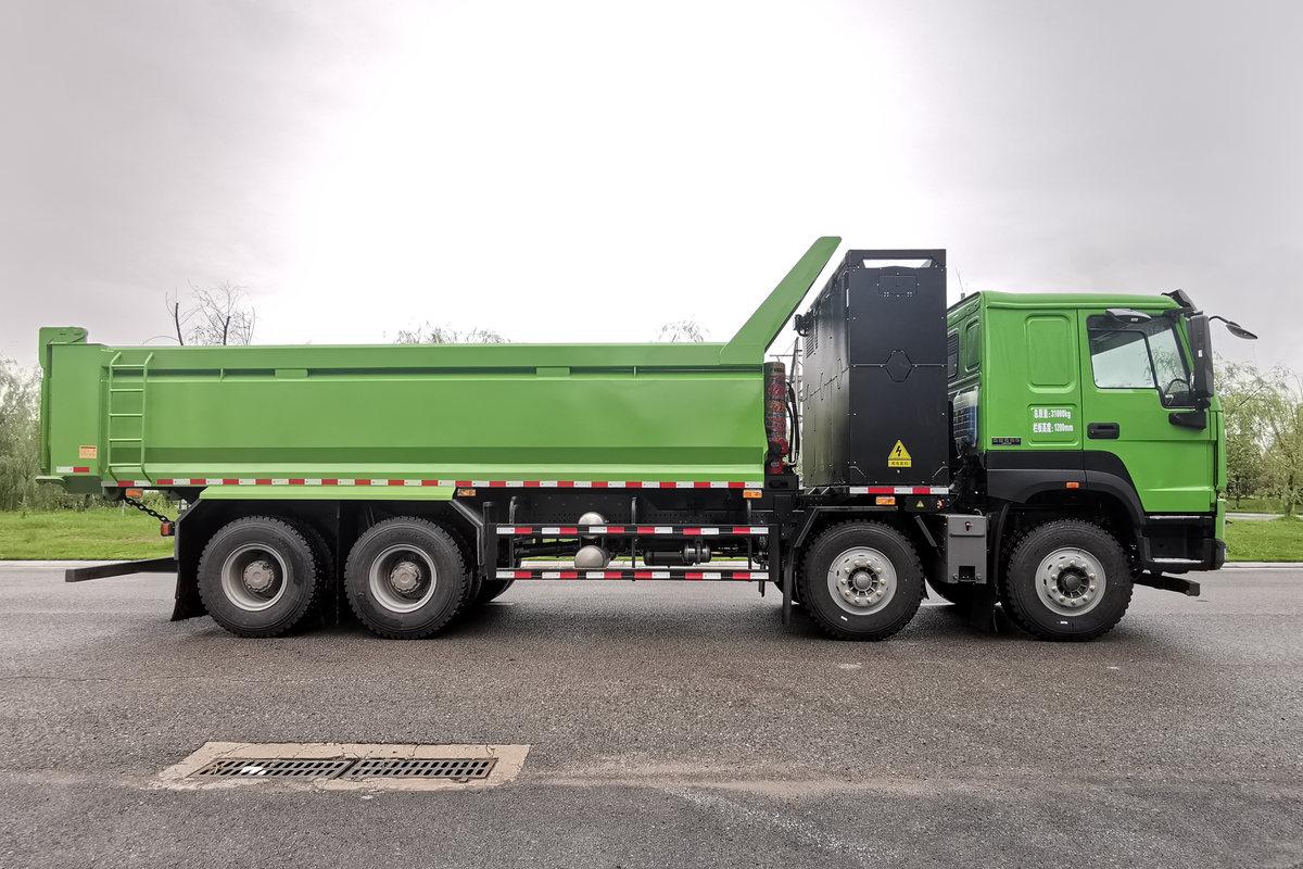 The Sinotruk Chengdu V7-X 31T 8X4 8-meter Electric Dump Truck is engineered for robust performance in construction and heavy-duty transport. This 8X4 drive vehicle features a sizable 8-meter long, 2.35-meter wide, and 1.5-meter high rectangular cargo box, providing a generous 28.2 cubic meters of volume for substantial load capacity. With a 31-ton Gross Vehicle Weight (GVW) and a 10.21-ton rated payload, it's built to handle challenging assignments. Power comes from a 410 kW (approx. 550 HP) peak power permanent magnet synchronous motor that delivers a massive 2500 N·m of peak torque, ensuring strong acceleration and climbing power even under full loads.